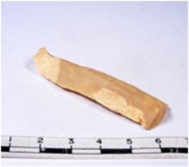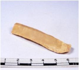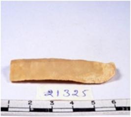 | Description / विवरण | A fragment of a rectangular shaped chert blade showing dorsal sides with sharp edges having smooth surface and triangular section. |
