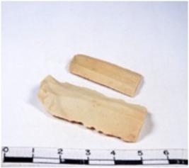 | Description / विवरण | A fragment of a rectangular shaped chert blade showing dorsal sides with sharp edges having smooth surface and triangular section. |