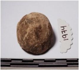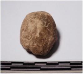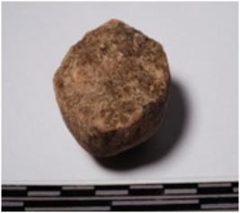 | Description / विवरण | A fragment of a terracotta round shaped sling ball of smooth surface. |