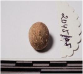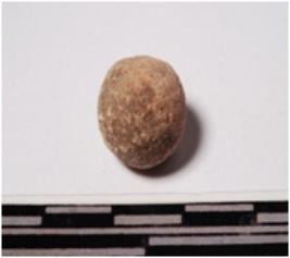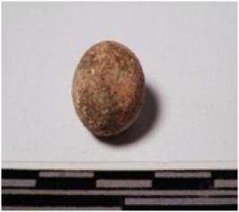 | Description / विवरण | A terracotta sling ball round in shape of smooth surface. |