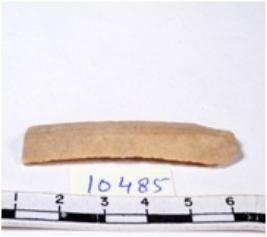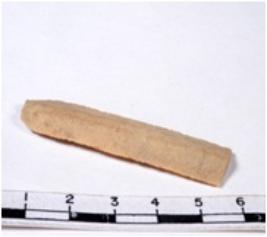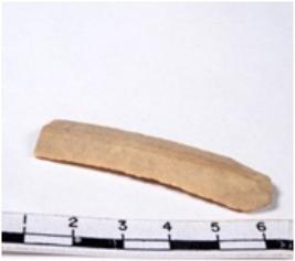 | Description / विवरण | A fragment of a rectangular shaped chert blade showing dorsal sides with sharp edges having smooth surface and triangular section. |