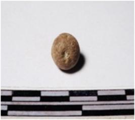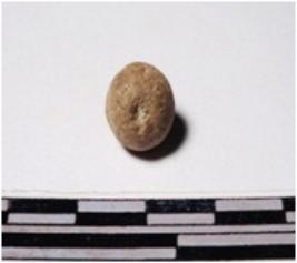| Description / विवरण | A terracotta small sling ball round in shape of smooth surface. |