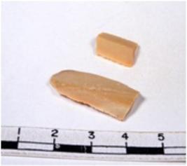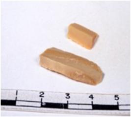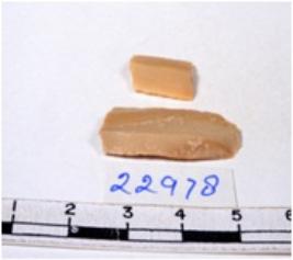 | Description / विवरण | A fragment of a rectangular shaped chert blade showing dorsal sides with sharp edges having smooth surface and triangular section. |