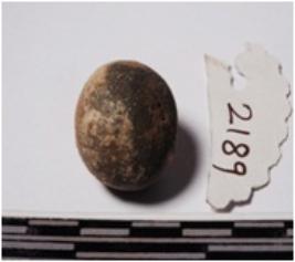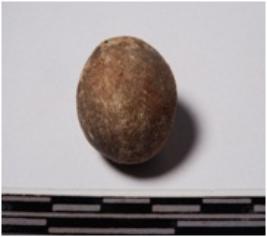 | Description / विवरण | A terracotta small sling ball round in shape of smooth surface. |