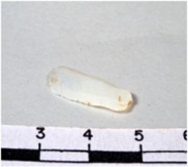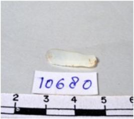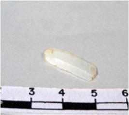 | Description / विवरण | A fragment of a rectangular shaped chert blade showing flat sides with sharp cutting edges having smooth surface and triangular section. |