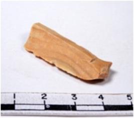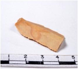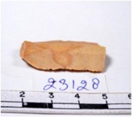 | Description / विवरण | A fragment of a rectangular shaped chert blade showing dorsal sides with sharp edges having smooth surface and triangular section. |