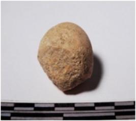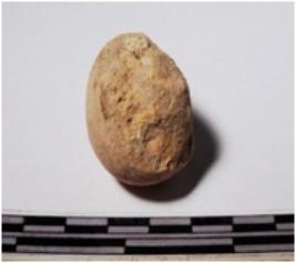 | Description / विवरण | A fragment of a terracotta round shaped sling ball, circular in section of smooth surface. |