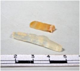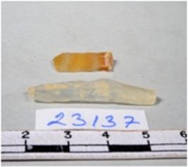 | Description / विवरण | A fragment of a rectangular shaped chalcedony blade showing dorsal sides with sharp edges having smooth surface and triangular section. |
