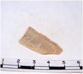 | Description / विवरण | A fragment of a rectangular shaped chert blade showing flat sides with sharp edges having smooth surface and uneven section. |