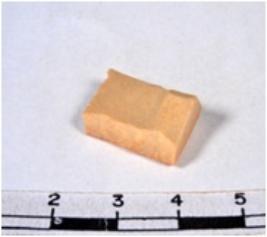 | Description / विवरण | A fragment of a rectangular shaped chert blade showing dorsal sides with sharp edges having smooth surface and uneven section. |