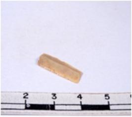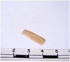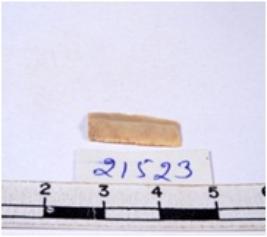 | Description / विवरण | A fragment of a rectangular shaped chert blade showing dorsal sides with sharp edges having smooth surface and triangular section. |