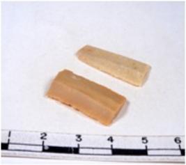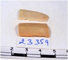| Description / विवरण | A fragment of a rectangular shaped chert blade showing parallel sides with sharp edges having smooth surface and triangular section. |