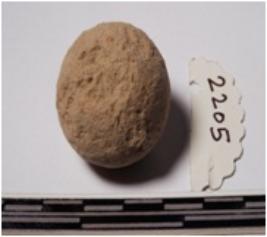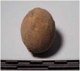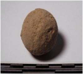 | Description / विवरण | A terracotta sling ball round in shape of smooth surface. |