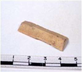 | Description / विवरण | A fragment of a rectangular shaped chert blade showing dorsal sides with sharp edges having smooth surface and triangular section. |