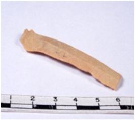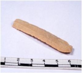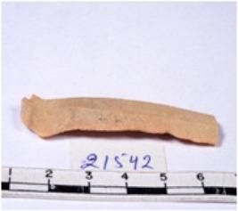 | Description / विवरण | A fragment of a rectangular shaped chert blade showing dorsal sides with sharp cutting edges having smooth surface and triangular section. |