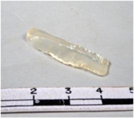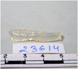 | Description / विवरण | A fragment of a rectangular shaped chalcedony blade showing dorsal sides with sharp edges having smooth surface and triangular section. |