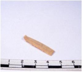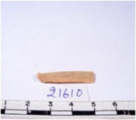 | Description / विवरण | A fragment of a rectangular shaped chert blade showing dorsal sides with sharp edges having smooth surface and triangular section. |