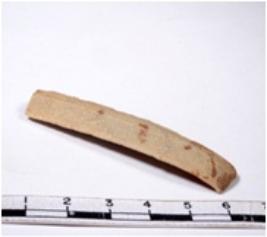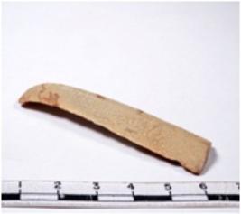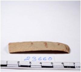 | Description / विवरण | A fragment of a rectangular shaped chert blade showing parallel sides with sharp edges having smooth surface and uneven section. |