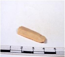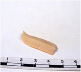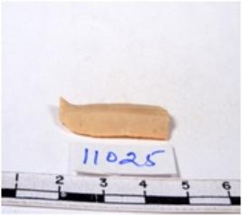 | Description / विवरण | A fragment of a rectangular shaped chert blade showing dorsal sides with sharp cutting edges having smooth surface and triangular section. |