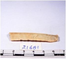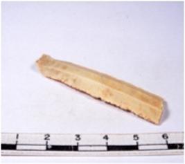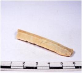 | Description / विवरण | A fragment of a rectangular shaped chert blade showing dorsal sides with sharp cutting edges having smooth surface and triangular section. |