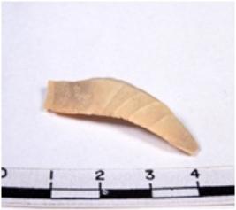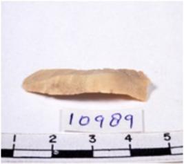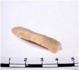 | Description / विवरण | A fragment of a rectangular shaped chert blade showing dorsal sides with sharp cutting edges having smooth surface and triangular section. |