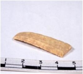 | Description / विवरण | A fragment of a rectangular shaped chert blade showing parallel sides with sharp edges having smooth surface and uneven section. |