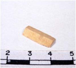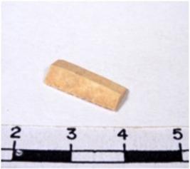 | Description / विवरण | A fragment of a rectangular shaped chert blade showing dorsal sides with sharp cutting edges having smooth surface and uneven section. |