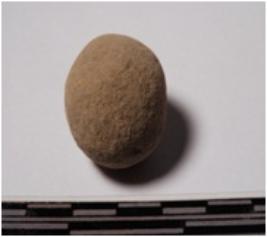 | Description / विवरण | A terracotta round in shaped sling ball of smooth surface. |