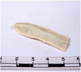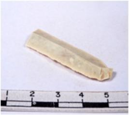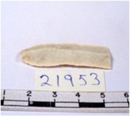 | Description / विवरण | A fragment of a rectangular shaped chert blade showing dorsal sides with sharp edges having smooth surface and triangular section. |
