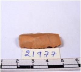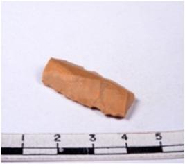 | Description / विवरण | A fragment of a rectangular shaped chert blade showing dorsal sides with sharp edges having smooth surface and triangular section. |