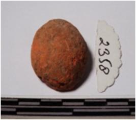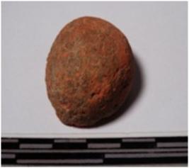 | Description / विवरण | A fragment of a terracotta sling ball, globular in smooth surface. |