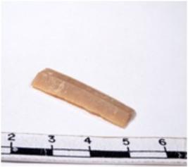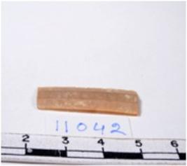 | Description / विवरण | A fragment of a rectangular shaped chert blade showing parallel sides with sharp edges having smooth surface and uneven section. |
