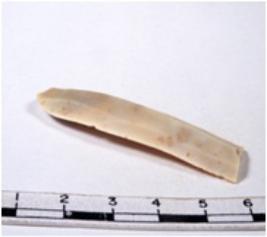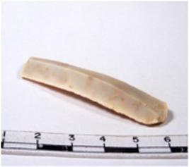| Description / विवरण | A fragment of a rectangular shaped chert blade showing parallel sides with sharp edges having smooth surface and uneven section. |