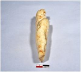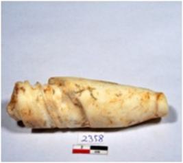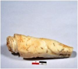 | Description / विवरण | A long sized of shell point showing conical in shaped, broken both end, screw marks on top, having rough surface. |