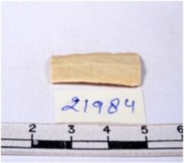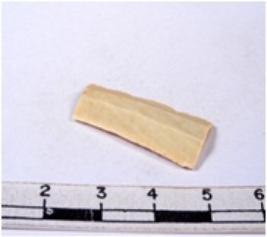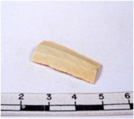| Description / विवरण | A fragment of a rectangular shaped chert blade showing dorsal sides with sharp edges having smooth surface and triangular section. |