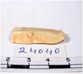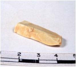 | Description / विवरण | A fragment of a rectangular shaped chert blade showing dorsal sides with sharp edges having smooth surface and triangular section. |