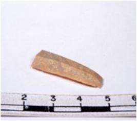 | Description / विवरण | A fragment of a rectangular shaped chert blade showing dorsal sides with sharp edges having smooth surface and triangular section. |