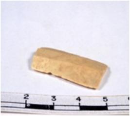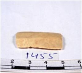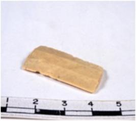 | Description / विवरण | A fragment of a rectangular shaped chert blade showing parallel sides with sharp cutting edges having smooth surface and uneven section. |