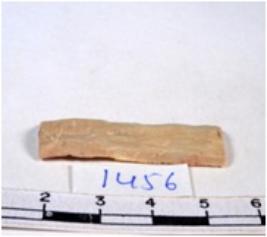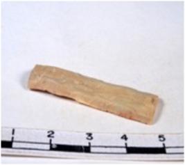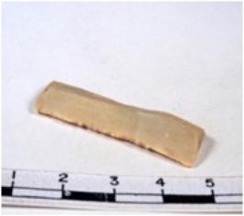 | Description / विवरण | A fragment of a rectangular shaped chert blade showing dorsal sides with sharp edges having smooth surface and triangular section. |