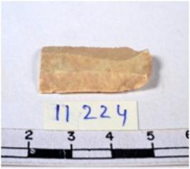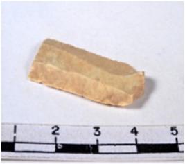 | Description / विवरण | A fragment of a rectangular shaped chert blade showing dorsal sides with sharp cutting edges having smooth surface and triangular section. |