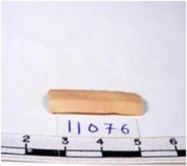 | Description / विवरण | A fragment of a rectangular shaped chert blade showing dorsal sides with sharp edges having smooth surface and triangular section. |