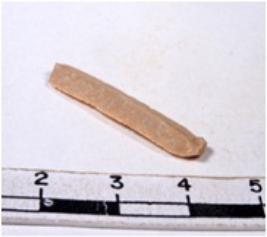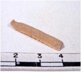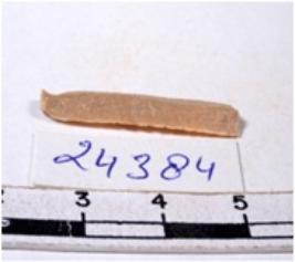 | Description / विवरण | A fragment of a rectangular shaped chert blade showing dorsal sides with sharp edges having smooth surface and triangular section. |