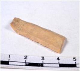 | Description / विवरण | A fragment of a rectangular shaped chert blade showing dorsal sides with sharp edges having smooth surface and triangular section. |