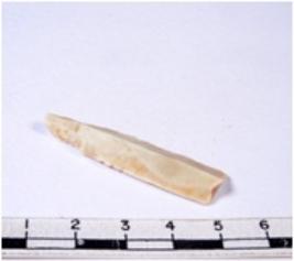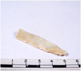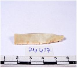 | Description / विवरण | A fragment of a rectangular shaped chert blade showing dorsal sides with sharp edges having smooth surface and triangular section. |