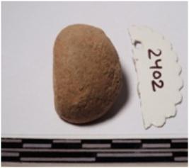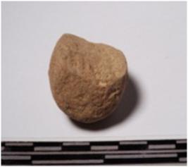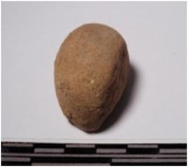 | Description / विवरण | A fragment of a terracotta round shaped sling ball, circular in section of smooth surface. |