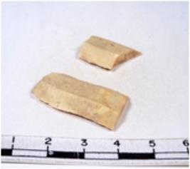 | Description / विवरण | A fragment of a rectangular shaped chert blade showing dorsal sides with sharp cutting edges having smooth surface and triangular section. |