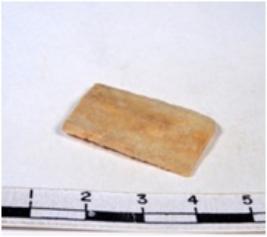 | Description / विवरण | A fragment of a rectangular shaped chert blade showing dorsal sides with sharp cutting edges and smooth surface and triangular section. |