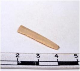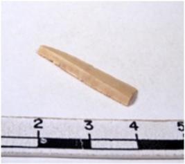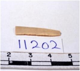 | Description / विवरण | A fragment of a rectangular shaped chert blade showing dorsal sides with sharp edges having smooth surface and triangular section. |