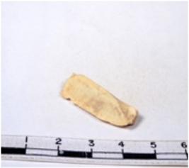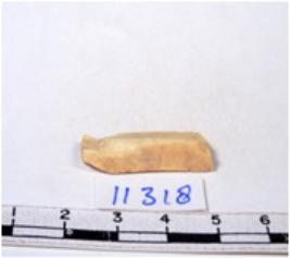 | Description / विवरण | A fragment of a rectangular shaped chert blade showing dorsal sides with sharp edges having smooth surface and triangular section. |