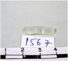 | Description / विवरण | A fragment of a rectangular shaped chalcedony blade showing dorsal sides with sharp edges having smooth surface and uneven section. |